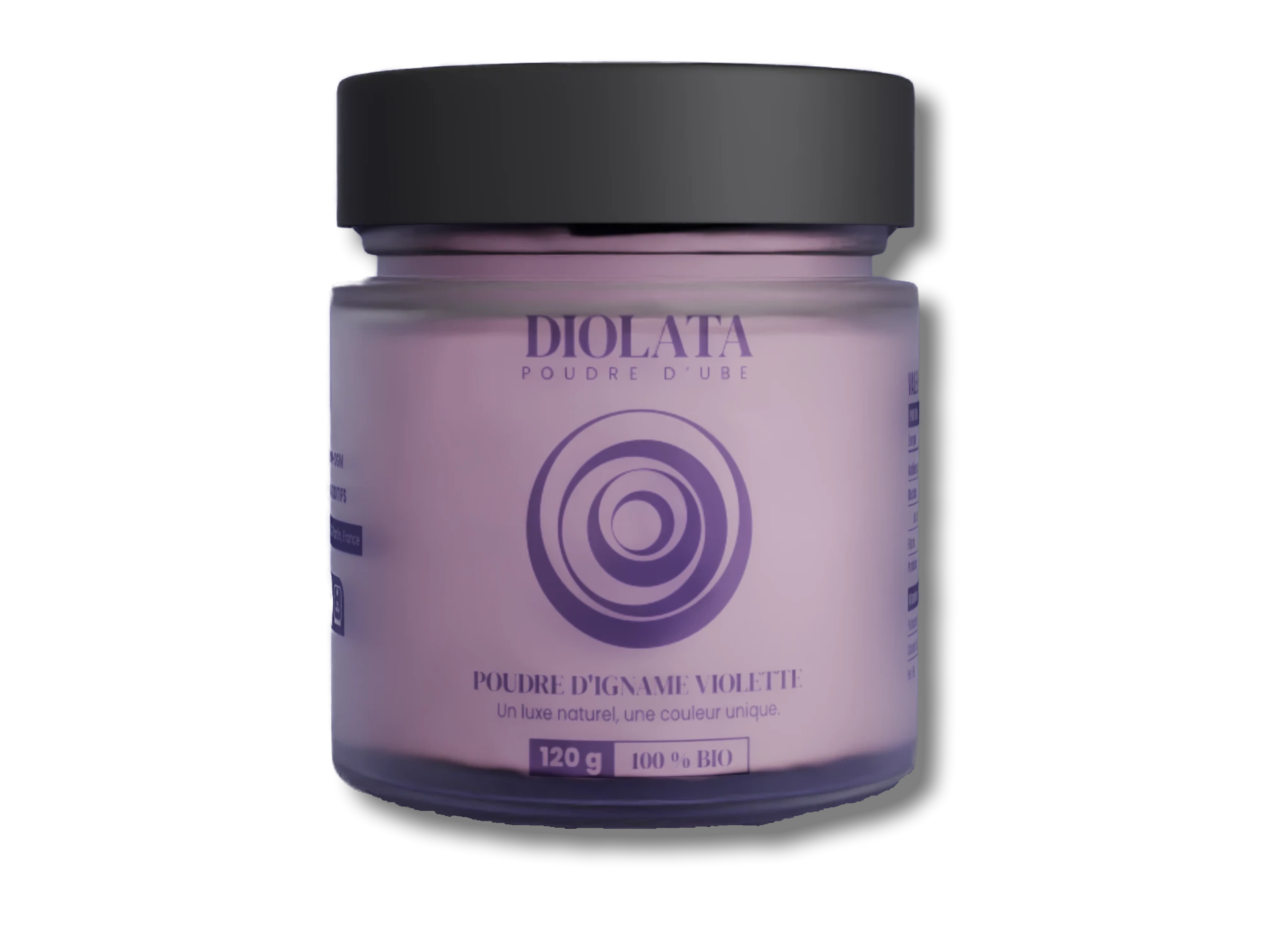 Notre poudre est composée d'ube pur et de qualité supérieure. Nous sommes fiers de proposer une liste d'ingrédients épurée : sans additifs artificiels, sans conservateurs et sans colorants synthétiques. Chaque cuillère vous offre le meilleur de l'igname violette, prête à être dégustée.