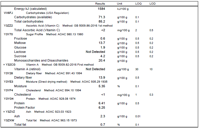 - Régimes : Produit certifié vegan et naturellement sans gluten.